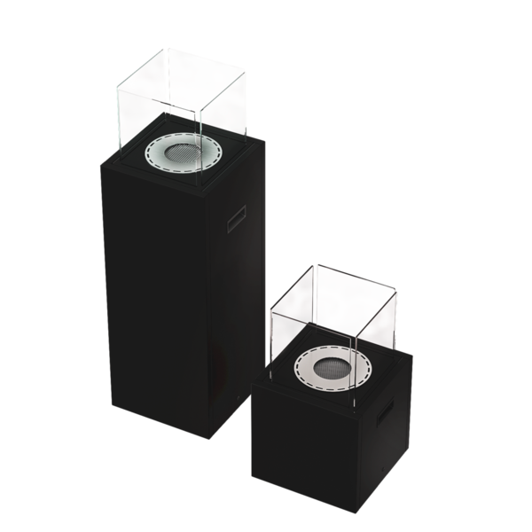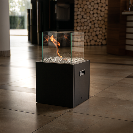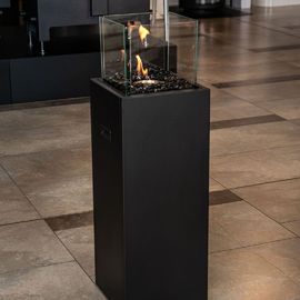 Vier Glasscheiben bieten rundherum Schutz vor der offenen Flame. COLUMN ist in zwei Größen erhältlich.