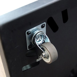 Die Flamme wird über eine Taste in der unteren Kammer gestartet. Dank stabiler Rollen kann der Heizstrahler mühelos bewegt werden.